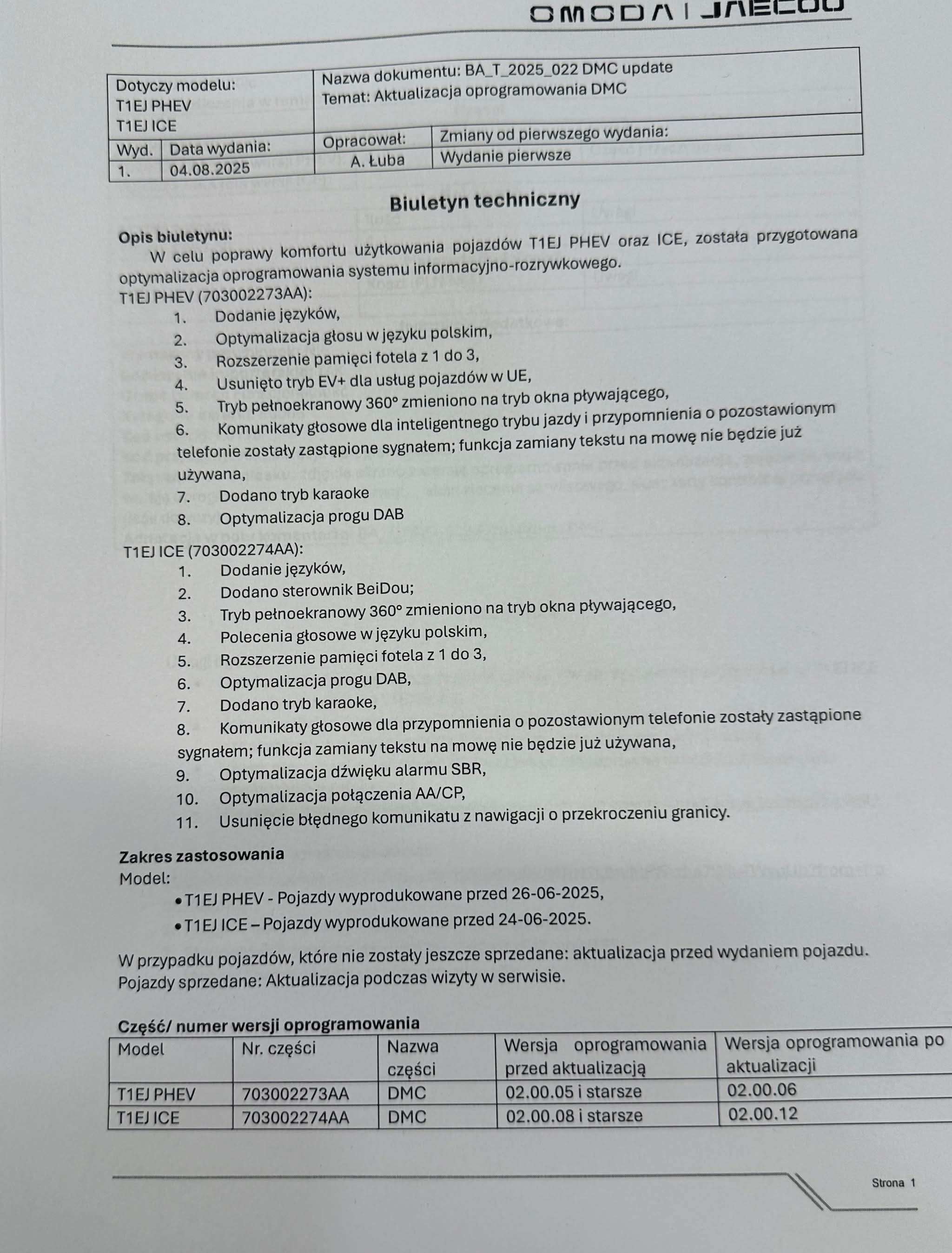 Wczoraj zrobili mi aktualizację. Systemu multimedialny oraz serwer DMS. Pierwsze wrażenie: dodali opcje ustawienia fotela (teraz trzy warianty). Komunikaty po polsku i komendy po polsku. Nie działa przypomnienie o zostawionej komórce. Serwer DMS wywalił błąd . I śmieszny komunikat o przychodzącym połączeniu. Strasznie cicho zaczął kierunkowskaz działać. I mniej natarczywy dźwięk jak się przekracza linię. To tyle z pierwszych wrażeń.